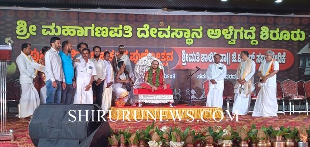 ಶಿರೂರು: ಮಾನವ ಜೀವನದಲ್ಲಿ ಎಷ್ಟೆ ಅಭಿವೃದ್ದಿ ಸಾಧಿಸಿದ್ದೇನೆಂದರು ಭಗವಂತನ ಲೀಲೆಯ ಮುಂದೆ ನಗಣ್ಯ.ಈ ಜಗತ್ತಿನ ಪ್ರತಿ ಕಾರ್ಯಗಳು ಭಗವಂತನ ಸೃಷ್ಟಿಯಾಗಿದೆ.ದೇವಾಲಯಗಳ ಅಭಿವೃದ್ದಿ ಊರಿನ ಪ್ರಗತಿಯ ಸಂಕೇತವಾಗಿದೆ.ಪರಮಾತ್ಮನ ನಾಮಸ್ಮರಣೆ ಪ್ರತಿಯೊಬ್ಬರ ಬದುಕಿಗೆ ಚೈತನ್ಯ ನೀಡುತ್ತದೆ ಎಂದು ಬಾಳೆಕುದ್ರು ಹಂಗಾರಕಟ್ಟೆ ಪರಮಪೂಜ್ಯ ಶ್ರೀಮದ್ ಜಗದ್ಗುರು ಶಂಕರಾಚಾರ್ಯ ಶ್ರೀ ಶ್ರೀ ವಾಸುದೇವ ಸದಾಶಿವಾಶ್ರಮ ಮಹಾಸ್ವಾಮಿ ಶ್ರೀ ಶ್ರೀ ವಾಸುದೇವ ಸದಾಶಿವಾಶ್ರಮ ಶ್ರೀಪಾದಂಗಳ ಹೇಳಿದರು ಅವರು ಶ್ರೀ ಮಹಾಗಣಪತಿ ದೇವಸ್ಥಾನ ಅಳ್ವೆಗದ್ದೆ ಶಿರೂರು ಇದರ ಪುನರ್ ಪ್ರತಿಷ್ಠೆ ಹಾಗೂ ಬ್ರಹ್ಮಕಲಶೋತ್ಸವದ ಎರಡನೇ ದಿನದ ಧಾರ್ಮಿಕ ಕಾರ್ಯಕ್ರಮದಲ್ಲಿ ಆಶೀರ್ವಚನ ನೀಡಿದರು.